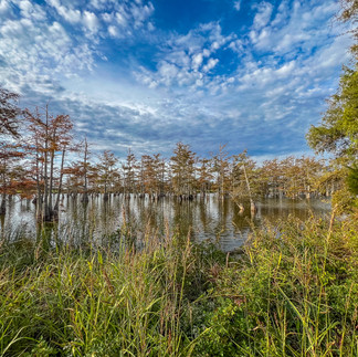As I cruised down the road, a striking lake lined with cypress trees caught my eye. I pulled onto a narrow path, barely wide enough for my Jeep, expecting it to open into a wider area. It didn’t. Undeterred, I pressed on until I reached a tight spot just big enough for a three-point turnaround. Before maneuvering back, I spotted a perfect vantage point for some photos. Camera in hand, I stepped out, cautious not to get too close to the water’s edge—unsure if alligators lurked this far north, though I knew for certain they’d be in the waters back home. I snapped my shots, capturing the serene beauty of the cypress-draped lake, then lingered a few extra minutes, soaking in the tranquil scene. The quiet, the towering trees, the still water—it was a moment worth savoring.